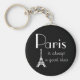 Um chaveiro com o ditado "Paris é sempre uma boa ideia" com uma fotografia da torre Eiffel. Está sobre um fundo preto, mas você pode mudar isso para qualquer cor que quiser!