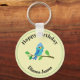 Pássaro azul Elegante e na moda com fundo amarelo e borda verde, você pode personalizar o texto e a foto do formato .png, ter um bom aniversário.
