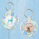Chaveiro Pastel Blue Poodle Custom Floral Name & Photo