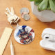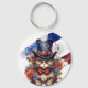 A charming patriotic illustration of a fluffy cat dressed in classic Americana style. The cat wears a tall Uncle Sam–inspired top hat decorated with stars, paired with a red bow tie, and is surrounded by elegant red, white, and blue florals with delicate gold accents. Rendered in a soft, painterly style with rich detail, this artwork blends whimsy, vintage charm, and national pride—perfect for festive décor, seasonal products, or cat lovers who enjoy a playful patriotic twist.