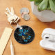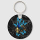 Chaveiro Pavão Elegante e borboletas azuis em preto