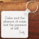 From the painting Serenity, this keychain shows a calm female face with closed eyes, rendered in gentle pastel pixel tones. The back features the quote "Calm isn’t the absence of noise, but the presence of self." A soothing and mindful piece to carry a moment of stillness with you.