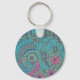 Pavão Floral Retro com uma bela imagem vintage de um pavão em frente à cerca de latência com flores e padrão de folha em verde-sábio, lacre e pêssego.