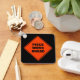Um clássico sinal de cautela de diamante laranja divertido avisa sobre um trabalho em frente em uma espessa fonte de serifa negra. Perfeito para alguém que trabalha em uma linha de produção ou que faz um trabalho repetitivo. Personalize este item adicionando um nome no verso.