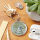 O grande chaveiro superior redondo do metal com uma imagem da deusa da lua cinzelou da pedra lunar.