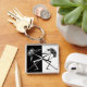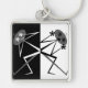 Playful par de figuras de pau minimalistas joga peekaboo em preto escuro, branco e cinzas.