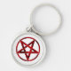 Pentagrama vermelho, invertido e texturizado em círculo, em fundo branco. Símbolo oculto. 666