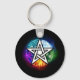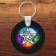 Pentagrama luminoso desenhado artificialmente com cinco elementos mágicos, água, terra, fogo, astral, ar sobre fundo negro. Pentagrama Wiccan. Wicca