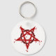 Um pentagrama vermelho invertido pingando pontos vermelhos.