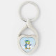 Um pequeno desenho animado de pinguim com chapéu e cachecol andando na neve.