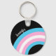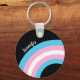 Bonita dádiva personalizada de chaveiro transgênero para um amigo LGBTQ que apresenta as cores bonito da bandeira trans formadas num arco-íris azul, rosa e branco.