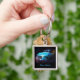 Adicione seu próprio nome ou negócio a este chaveiro superior impressionante. Um caminhão azul velho bonito do vintage do yesteryear, decked para fora no cromo e no grupo brilhantes de cintilação em um fundo preto do espaço. Destacado por estrelas e redemoinhos e outros fenômenos do espaço, é algo um pouco de diferente para o lustre do carro.