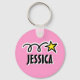 Chaveiro de nome personalizado para a garota | Rosa com design estelar. Bela ideia de presente de aniversário para meninas pequenas. Cor de fundo personalizável.