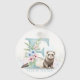 Chaveiro Personalized Floral Monogram 'F' with Cute Ferret