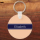 Chaveiro Pêssego Sólido, Monograma do Nome Azul da Fita Mar