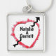 Mantenha uma pessoa especial com você onde quer que suas chaves vão. Personalize este anel de teclas artísticas com um quadro vermelho e seco e contorno de coração perfurado por uma seta que oferece espaço para nomes ou iniciais. Preencha os campos de modelo para alterar o texto ou clique em personalizar para selecionar um estilo de tipo, tamanho e cor preferidos. Em personalizar, você também pode selecionar uma cor de fundo diferente de branco.