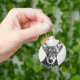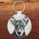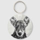 Uma chaveiro legal com um esboço de um rosto de cachorro olhando diretamente para você.