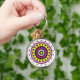 "Um belo e vibrante pingente mandala rosa e amarelo. Este acessório artístico adiciona um toque de cor às suas chaves ou bolsas. Um presente pequeno perfeito para qualquer ocasião."