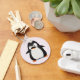Um pinguim engraçado preto e branco com um bigode preto engraçado. Um design retrô legal com um bigode preto engraçado de geek 80 em fundo de bolinhas rosa-giro. A ideia perfeita de presente de humor para ela em qualquer ocasião.