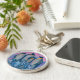 Chaveiro com pintura animalista, grupo de pinguins imperadores, pássaros gigantes em fatos pretos e brancos com pescoço amarelo alaranjado e seu ninho de pufe cinza. Paisagem colorida do inverno Antártico - céu azul e rosa e neve - como fundo. Arte animalista, pintura pastel, 2019 © Julia Khoroshikh Você pode personalizar facilmente esses produtos adicionando texto ou transferindo-o em qualquer produto Zazzle.