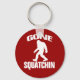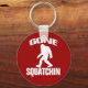 Chaveiro de Squatchin. Com Fundo Vermelho.