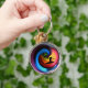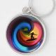 Grande chaveiro de metal redondo premium com imagem de um surfista cavalgando uma onda de oleoduto azul e roxo ao pôr do sol. Veja chaveiro de acrílico de dupla face redonda e colar redondo. Veja toda a coleção de Chaveiro do Mar em TOUCHES ESPECIAIS | Seção Favoritos para festas.