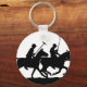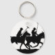 Ilustração da silhueta branca e preta de jogadores de polo em seus cavalos, balas balançando