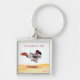 um desenho de cor d'água abstrato, ilustrado por um velho com cabelo comprido, vestindo um traje de karatê com cinturão preto, voando pelo ar e chutando; a imagem é desenhada à mão com tinta e colorida com aquarela, refinada pelo computador. Um imperativo para fãs de karatê e artes marciais e aqueles que querem se tornar.