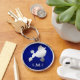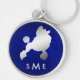 Uma imagem de silhueta prateada de um Poodle é colocada sobre um fundo azul vívido nesta atraente cadeia de teclas. Abaixo da imagem do cão está o monograma de três letras. Bonita, perfeita para quem ama um Poodle!