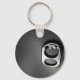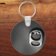 Uma foto em preto e branco de uma guia pop, em um chaveiro.
