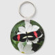 Para os fãs da natureza e da borboleta! Chaveiro de estilo redondo, em alumínio, que apresenta a imagem fotográfica de um postman vermelho e preto Longwing Butterfly que repousa sobre uma flor branca. Imagem impressa em ambos os lados do chaveiro.