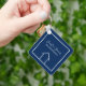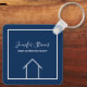 Este chaveiro moderno de corretor é personalizado com o nome da sua empresa real sob o nome do agente na tipografia quic. Esta cadeia de teclas quadradas azul e branco minimalista apresenta um desenho simples de uma casa. Presente contemporâneo para um agente que trabalha para ajudá-lo a comprar de uma casa.
