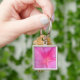 Elevem suas chaves com este luxuoso chaveiro quadrado premium, com um delicado design floral rosa. Feito com materiais de alta qualidade para um acessório sofisticado, durável e na moda. Perfeito para dobras ou uso pessoal!