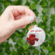 Uma ilustração nobre de Natal: Uma caixa vermelha de presentes com uma bola vermelha de Natal, uma fita e pérolas vermelhas num fundo de cinza branca leve com estrelas.
