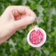 Chaveiro de botão redondo com o texto divertido "Brinque Muito e Beba Um Pouco" em uma mancha de vinho tinto e personalize com as informações da sua festa. Chaveiros fazem presentes memoráveis para familiares e amigos ou crie para você mesmo.