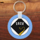 Boné de formatura com design de punho dourado sobre fundo azul claro. Editar texto para alterar o ano da classe do mais velho.