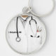 Crachá de chaveiro criativo de médico com jaleco médico e estetoscópio. Para personalizar, edite o texto para adicionar o nome do seu médico favorito.