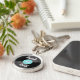 Um disco em estilo retrô decora este divertido pingente de chave de rock n roll. O design é de arte original.