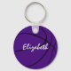 Este legal chaveiro do tema de basquete apresenta a imagem realista de uma bola de basquete que tem painéis coloridos roxos, brancos e pretos alternados - facilmente personalizados com o nome do atleta no verso e número de camisa e nome da equipe na frente - por katz_d_zynes