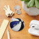 Este legal chaveiro do tema de basquete apresenta a imagem realista de uma bola de basquete que tem painéis coloridos azuis, brancos e pretos alternados - facilmente personalizados com o nome do atleta na frente e o número de camisa e o nome da equipe no verso - por katz_d_zynes