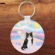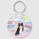Um anjo preto americano de gato de curta distância em um céu de fita colorido e nuvens fluffy cor-de-rosa - uma perfeita ponte arco-íris / design memorial.