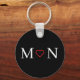 Um chaveiro personalizado monograma moderno com iniciais brancas sobre fundo preto. Você pode personalizá-lo agora para adicionar sua inicial e aquelas que você ama.