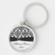 Este chaveiro preto e branco chique do damasco com fita e jóias do falso combina o convite do casamento mostrado abaixo. É personalizado para sua madrinha de casamento, mas você pode mudar o texto a qualquer coisa que você quer. Você pode mudar o tamanho e a forma do chaveiro demasiado. Este tamanho faz um encanto ideal da bolsa. Se você precisa algum auxílio com personalizamento disto, envie por correio electrónico niteowlstudio@gmail.com.