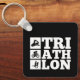Chaveiro com um design gráfico ousado dividindo a palavra "TRIATHLON" em três componentes alinhados ao lado de ícones reconhecíveis que representam os três eventos - NATAÇÃO, BIKE, RUN. Design disponível numa coleção curada de cores modernas ricas. Ferramenta perfeita de motivação visual, guardar, favor de festa e presente.