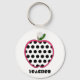 Um presente de professor com ilustração de uma maçã branca com bolinhas pretas. A maçã é esboçada em rosa.