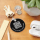 Chaveiro preto moderno para sua empresa ou organização, Adicione seu código QR ou logotipo e duas linhas de texto personalizado, como o nome da sua empresa, slogan, obrigado você etc., em uma simples tipografia branca.