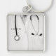 Pulseira exclusiva para médicos com jaleco e estetoscópio. Para personalizar, edite o texto para adicionar nome e credenciais médicas.