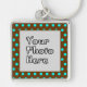 Uma cadeia de chaves de fotograma marrom e aqua bolinhas que pode ser personalizada com sua própria foto carregada digitalmente. O design funcionará em chaveiros quadrados ou redondos, mas é melhor nos estilos quadrados. Não importa qual forma você escolhe o recorte do quadro fotográfico permanecerá quadrado.