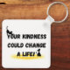 A heartfelt message is displayed with silhouettes of a cat and dog, emphasizing the impact of kindness. The words "Your Kindness Could Change A Life!" are highlighted on a white background.