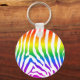 Impressão de pele zebra arco-íris. Padrão colorido. Cadeias de chave personalizadas. Design original e colorido. Ideia do presente.